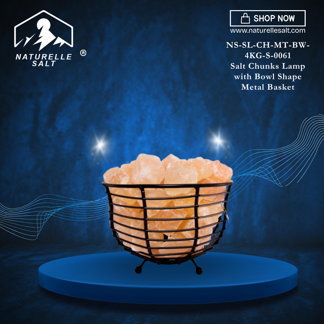 Salt Chunks Lamp with Bowl Shape Metal Basket